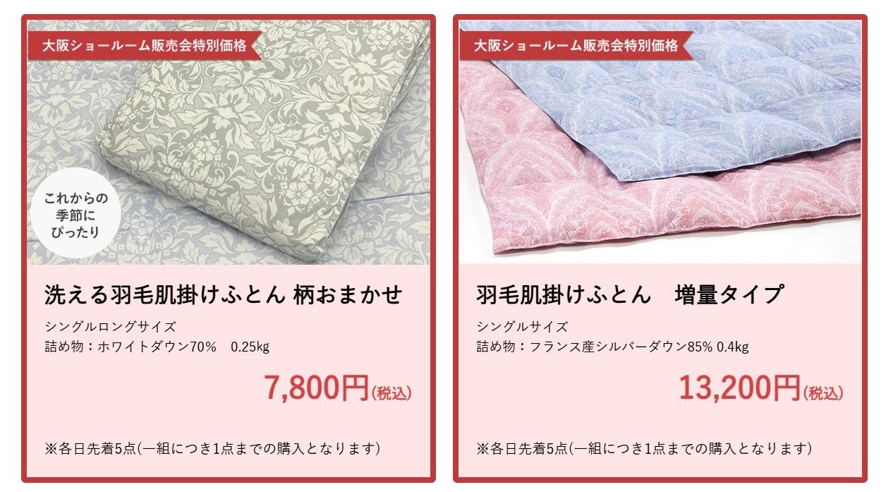 【昭和西川大阪ショールーム販売会概要】 <3日間限定>