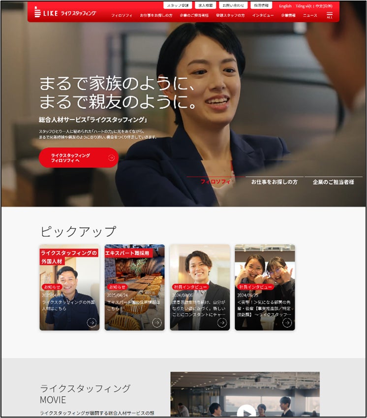 総合人材サービスを展開するライクスタッフィング、コーポレートサイトをリニューアルオープン