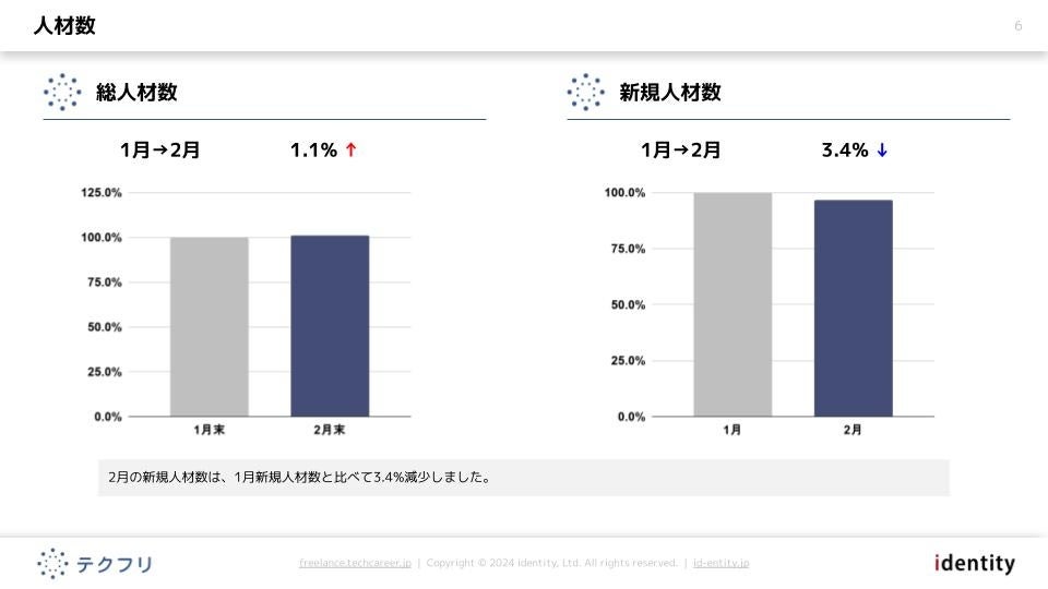 2月の新規人材数は、1月新規人材数と比べて3.4%減少しました。