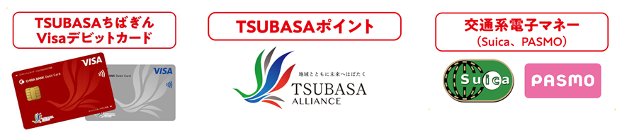 これまでお客さまには、銀行取引の各種手数料を現金または口座からの引き落としでお支払いいただいていましたが、「TSUBASAちばぎんVisaデビットカード」や「TSUBASAポイント」、「交通系電子マネー(Suica、PASMO)」でのキャッシュレス決済がご利用いただけるようになりました。