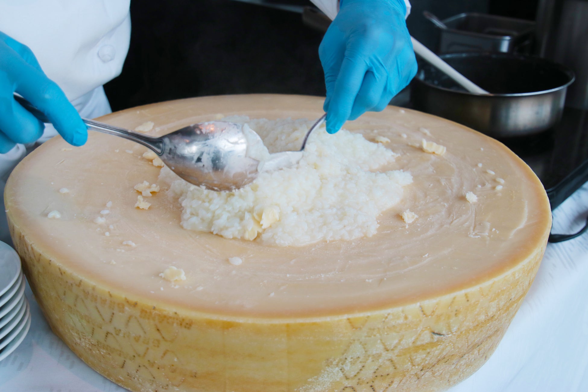 イタリア産チーズ「グラナパダーノ」をたっぷり使用し、目の前で仕上げる日替わりリゾットまたはパスタ。芳醇な香りとコクを存分にご堪能ください。