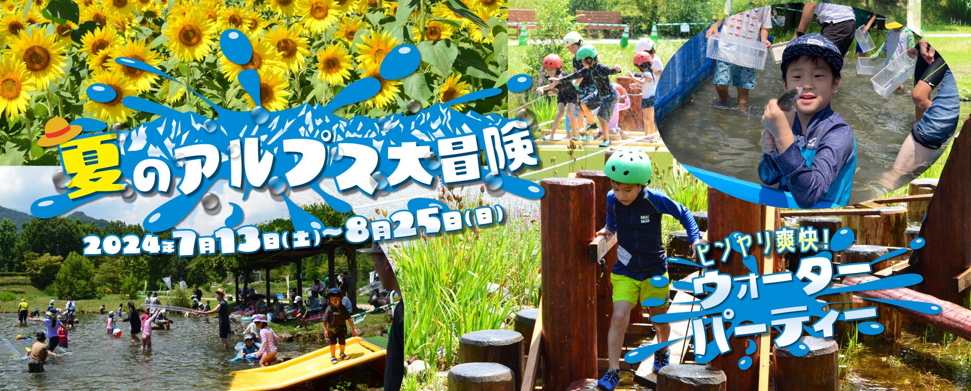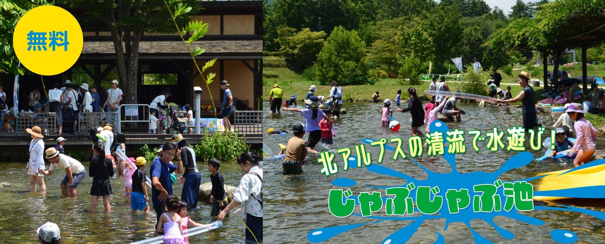 国営アルプスあづみの公園堀金・穂高地区の夏は、北アルプスから流れる自然の水を利用した3つのイベントを楽しんで頂けます。