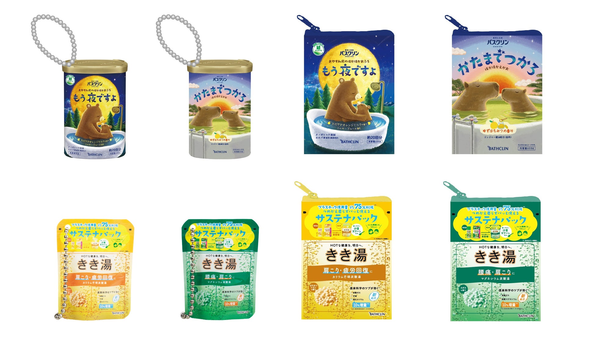 新商品「バスクリン かたまでつかろ」を含む、当社の定番入浴剤ブランド「バスクリン」「きき湯」をモチーフにした「ミニチュアキーホルダー」と「ポーチ」のカプセルトイが登場します。本品は、株式会社ブシロード(本社:東京都中野区、代表取締役社長:木谷高明)のグループ会社、株式会社ブシロードクリエイティブ(本社:東京都中野区、代表取締役社⻑:成⽥耕祐)が展開するオリジナルカプセルトイブランド『ブシカプ!』より、「バスクリン アソートコレクション Vol.2」として、2025年12月より全国のカプセルトイ売場にて順次発売予定です。入浴剤のパッケージをそのまま小さくしたようなかわいらしいアイテムで、当社ブランドの魅力をより身近にお楽しみいただけます。