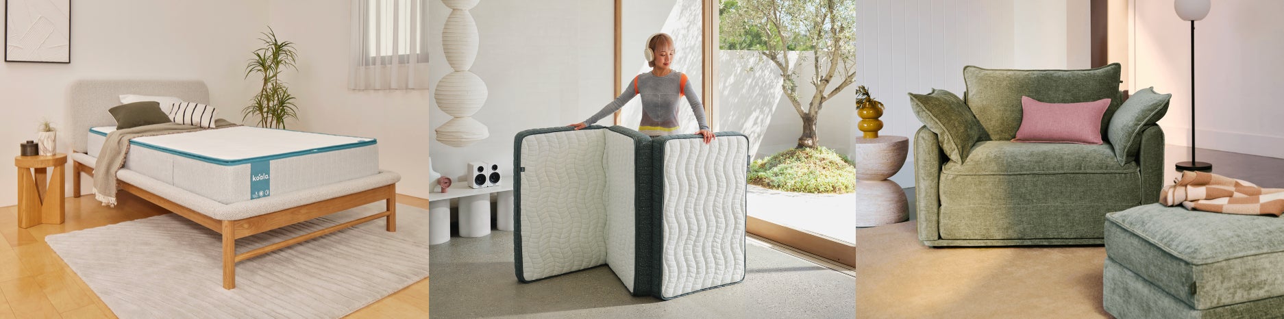 今回のPOP-UPストアには、睡眠の質を高めてくれる「コアラマットレス PLUS」と「コアラマットレス SUPREME」を「ミライカスタム ベッドフレーム」と「アーバンベッドフレーム(ヘッドボードなし)」にセットして展示します。ベッドフレームは、工具なしで簡単に組み立て可能です。他にも昨年発売された「コアラソファーベッド CUSHY」(1人掛け/シングル)や「コアラフトン PLUS」、そして「コアラピロー (2nd Gen)」など、最新アイテムをラインナップ。この機会にぜひ、コアラとともに心地よい新生活をスタートしませんか?