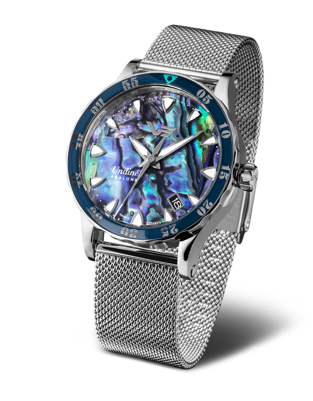 39mmのステンレススチールケースに収められた「UNDINE」は、回転式ダイバーズベゼルと200m防水性能を備え、水辺でのあらゆるアクティビティに適応。