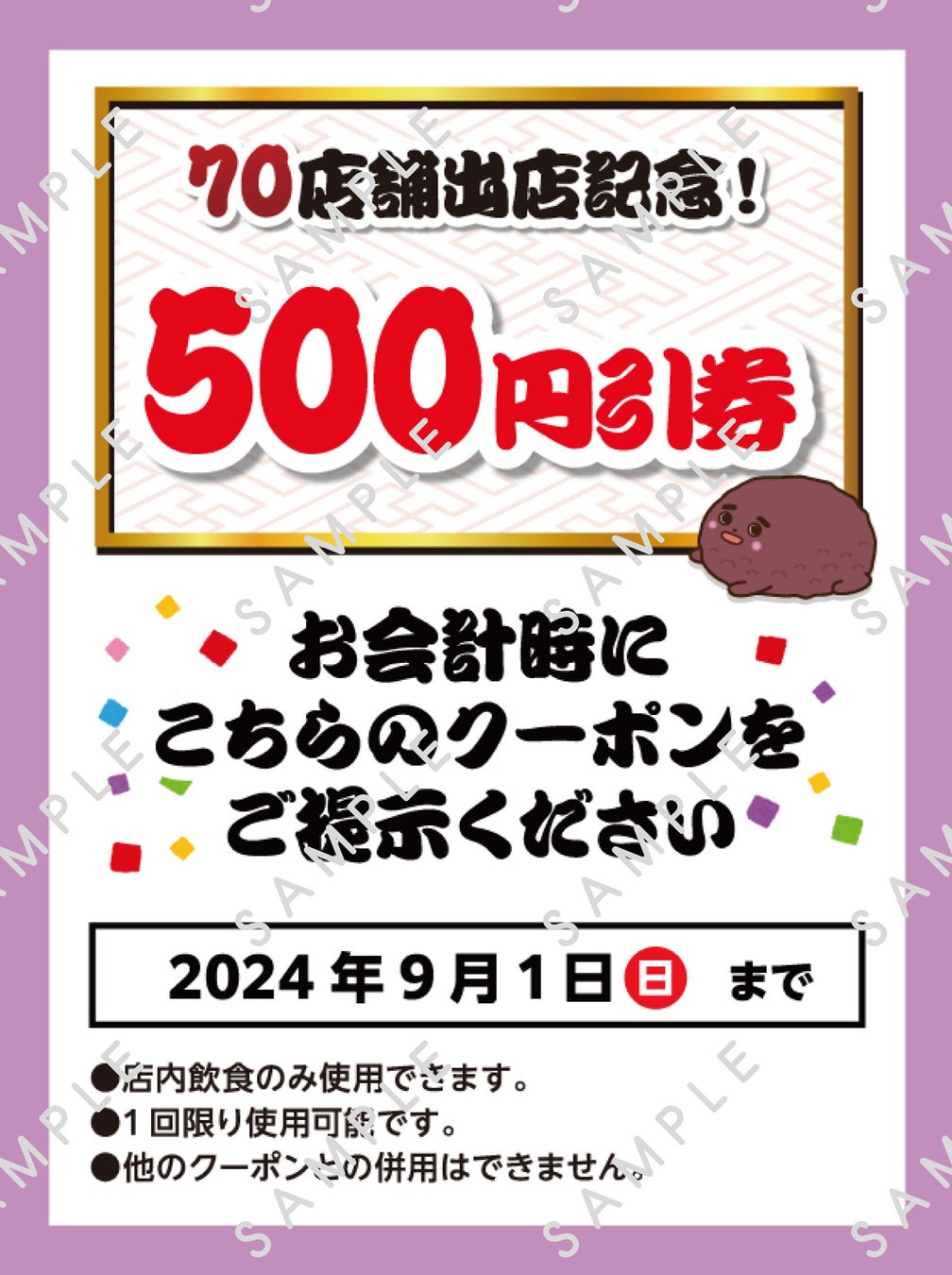 70店舗出店記念!総額7,777万円 クーポン大還元祭りを開催!
