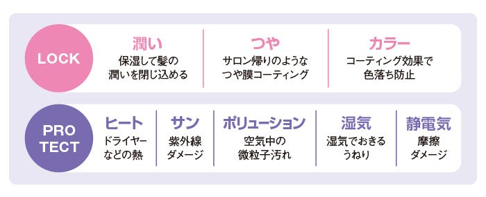 潤いを閉じ込め、逃さないようにしっかり繋ぎ止めながら髪を守ります。