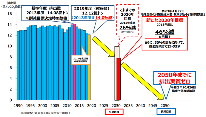 出典:国土交通省 2050年カーボンニュートラルの実現に向けた国内外の動向