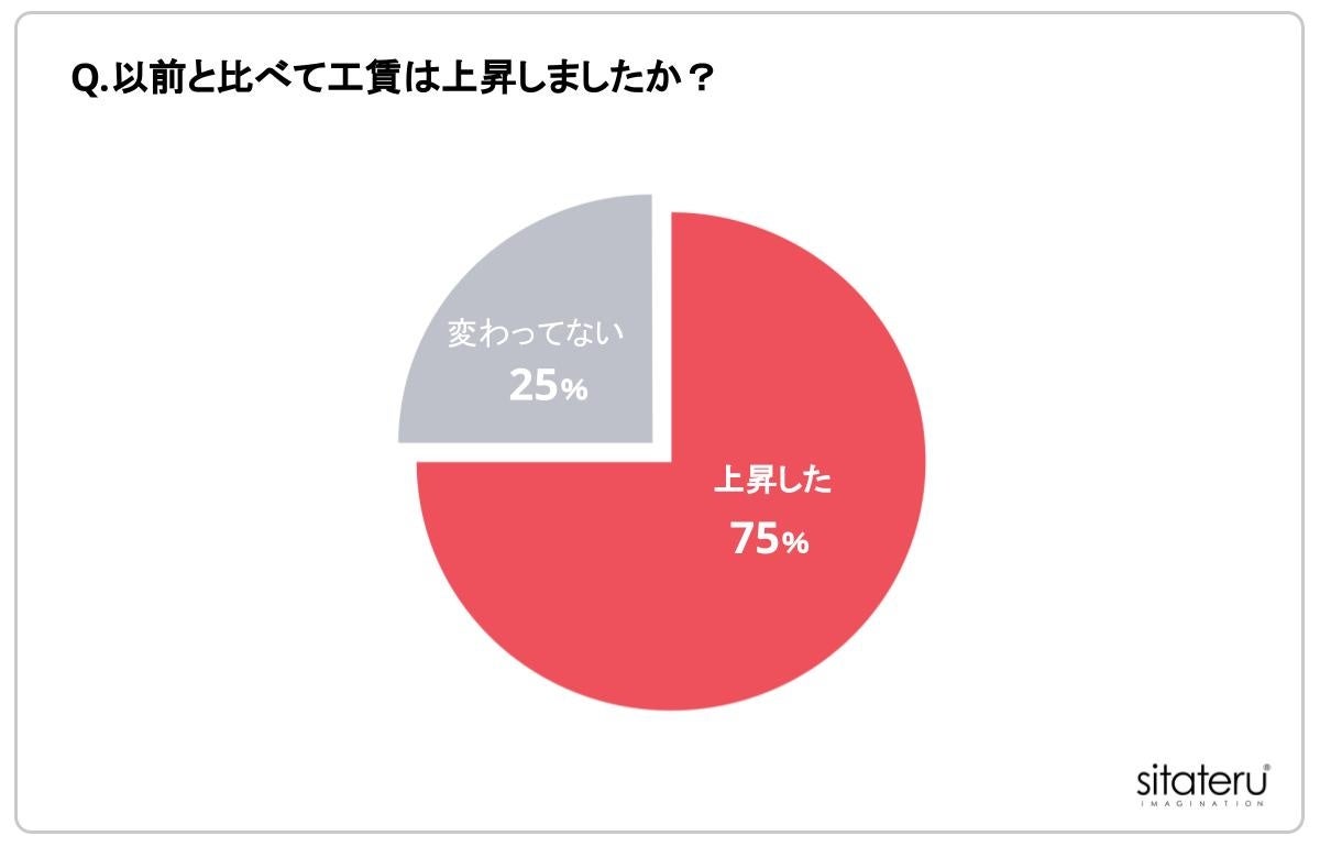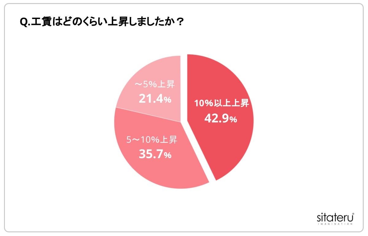 「工賃が上昇した」と回答した人に対して「Q.工賃はどのくらい上昇しましたか?」と質問したところ、42.9%が「10%以上上昇した」と回答しました。