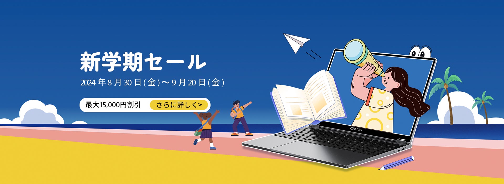 夏が終わり、新学期の準備が始まるこの季節に、CHUWIは生徒の皆さんをサポートします。2024年8月30日(金)から9月20日(金)の間、対象商品が最大15%OFFになる新学期セールを開催いたします。この期間中、割引クーポンが当たるサプライズボックスもご用意し、さらに、30,000円以上のお買い上げで特別プレゼントを差し上げるイベントも実施します。新学期に向けて、CHUWIの優れた製品を手に入れましょう!