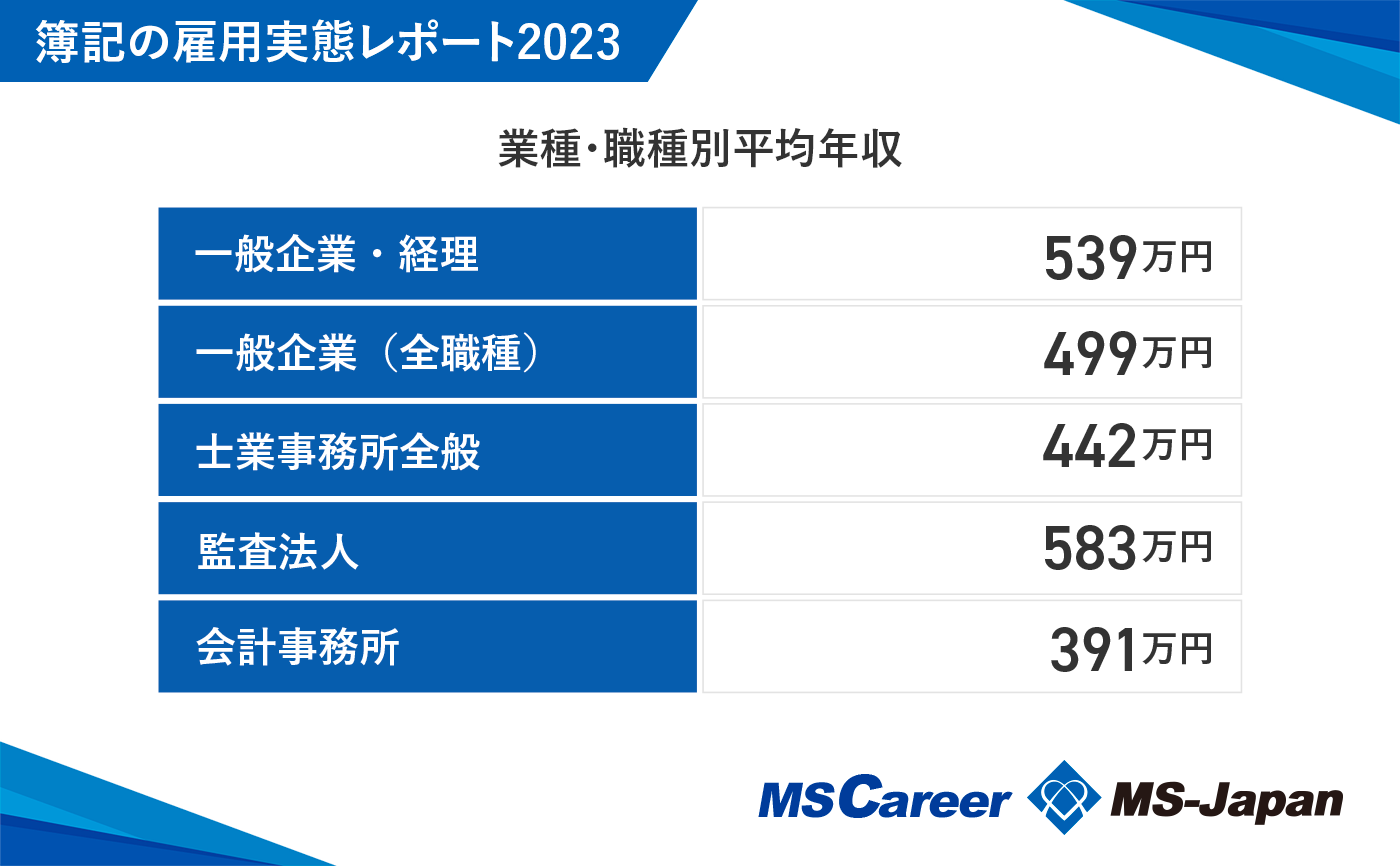 【簿記保有経理の平均年収は539万円】