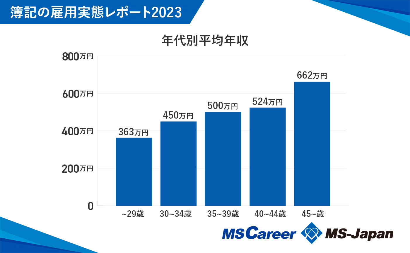 また、平均年収を年代別にみると、20代は365万円の一方、45歳以降の年代は、662万まであがることが明らかになりました。