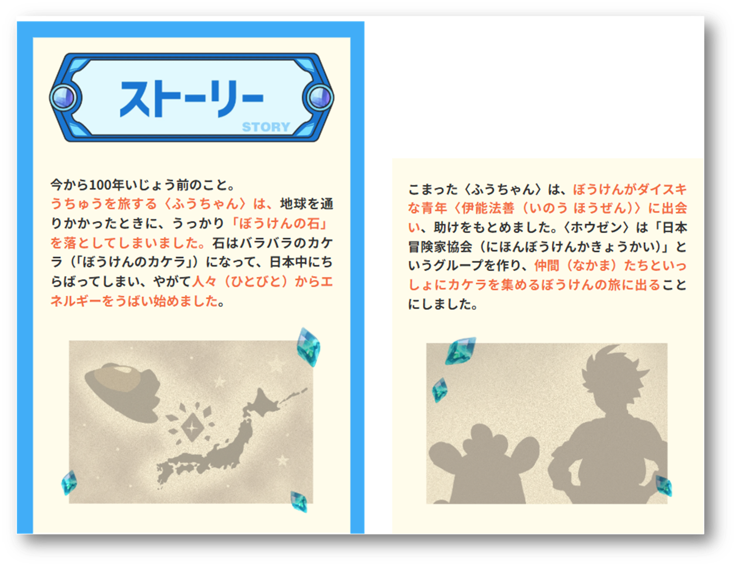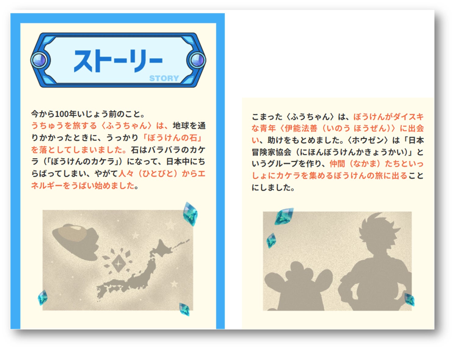 ストーリーとキャラクターを用意し、子どもたちが勉強感なく取り組めるようにしました。キャラクターデザインはトレーディングカードのイラストなども手掛ける人気イラストレーター・佐久間さのすけ氏(https://x.com/sakumasanosuke)が担当しています。