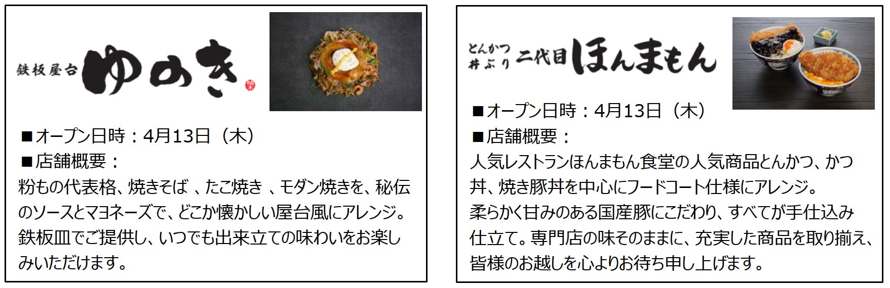 ●3階フードコートも第1弾の麺屋十彩に引き続き「鉄板焼台ゆのき」、「2代目ほんまもん」がリニューアルオープン