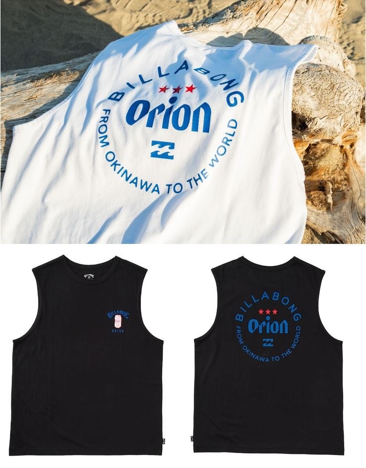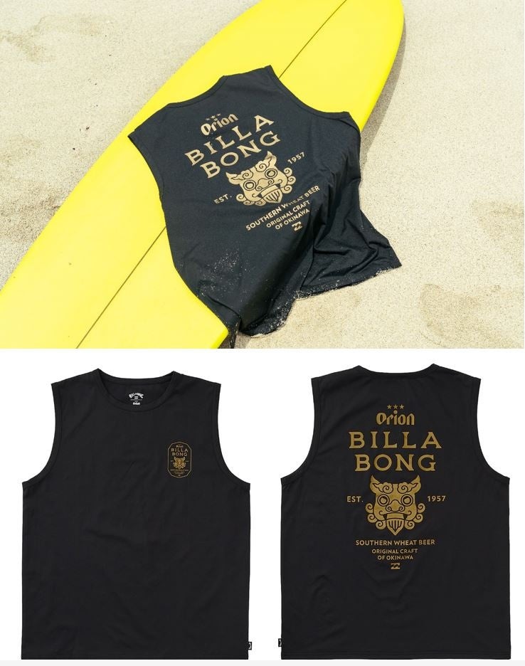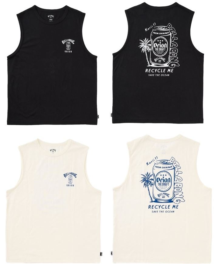 コットン素材のタンクトップ。バックには“楽しく飲んだら缶をリサイクルに”をテーマに、ORIONBEER の缶とBILLABONG ロゴをデザインしたインパクトのある1枚。 |