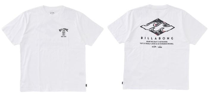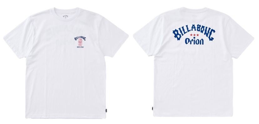 左胸にBILLABONG のアーチロゴと、ORION BEER の缶のグラフィックをオン。バックにも大胆にロゴをあしらったデザインに。 |