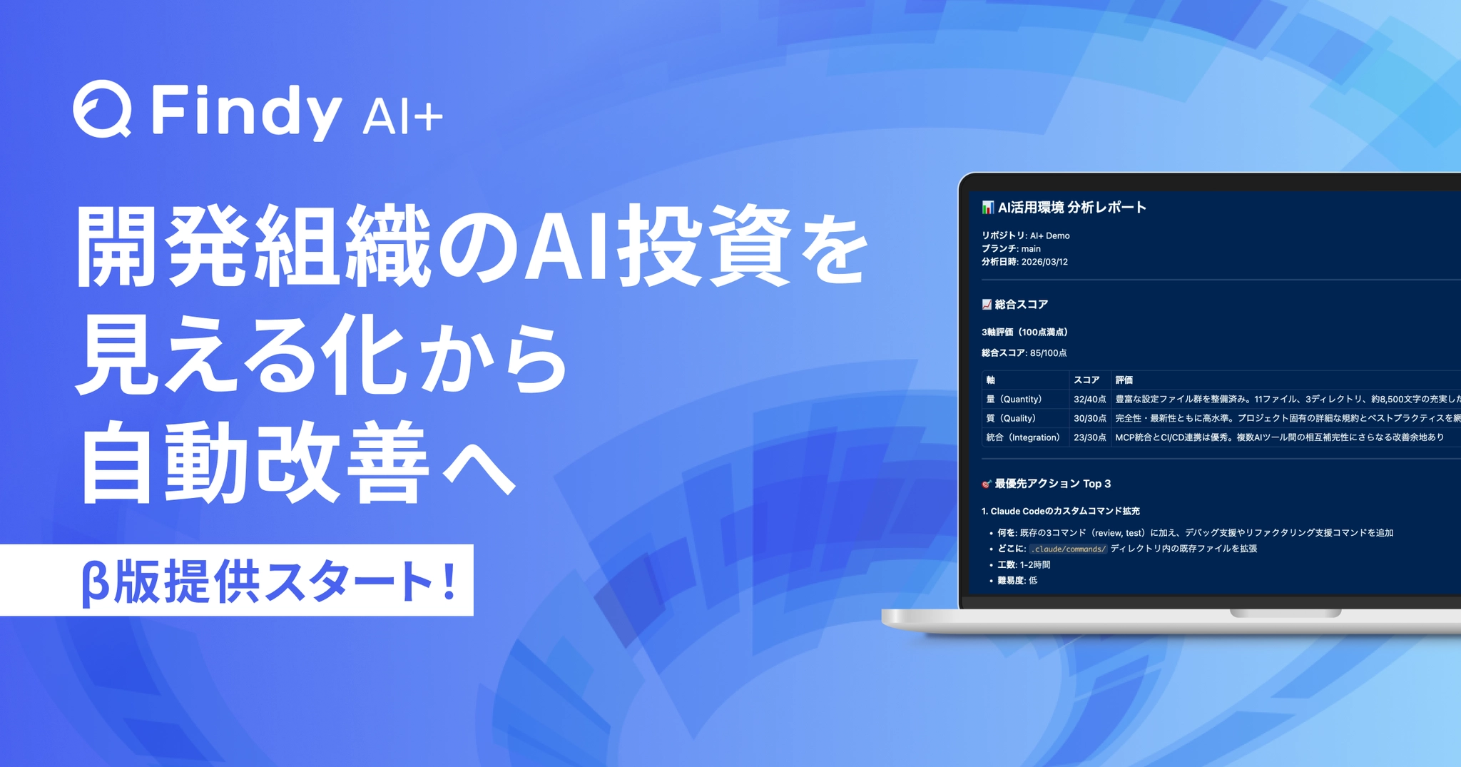 開発組織のAI投資を「見える化」から「自動改善」へ。Claude CodeやGitHub Copilotなど7つのAIツールの横断分析を実現する「Findy AI+」β版提供開始!