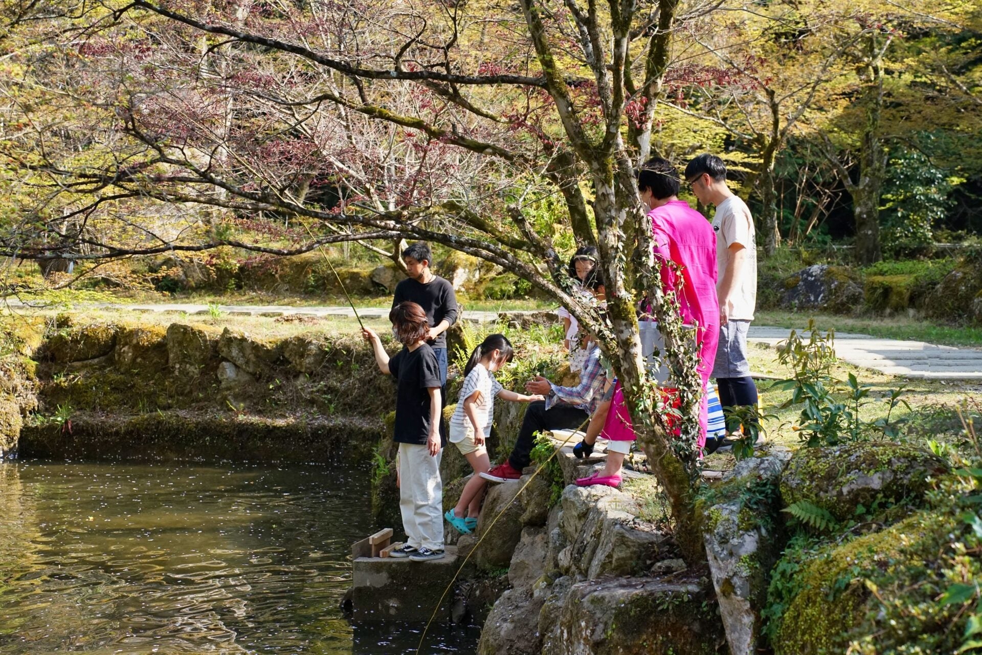 竿はパーク内に生えている竹で作った手作りの竹竿です。