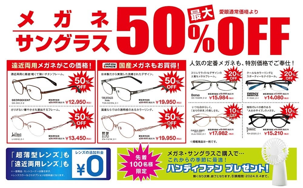 メガネ・サングラスをご購入のお客様、先着100名様限定にハンディファンをプレゼント!