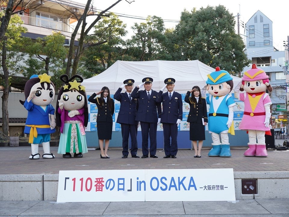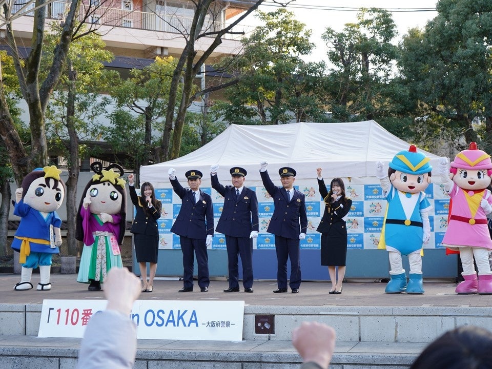 1月10日は「110番の日」として、枚方市内の会場では、警察車両や白バイの展示、110番通報の適正な利用や交通安全、特殊詐欺被害防止の啓発が行われました。