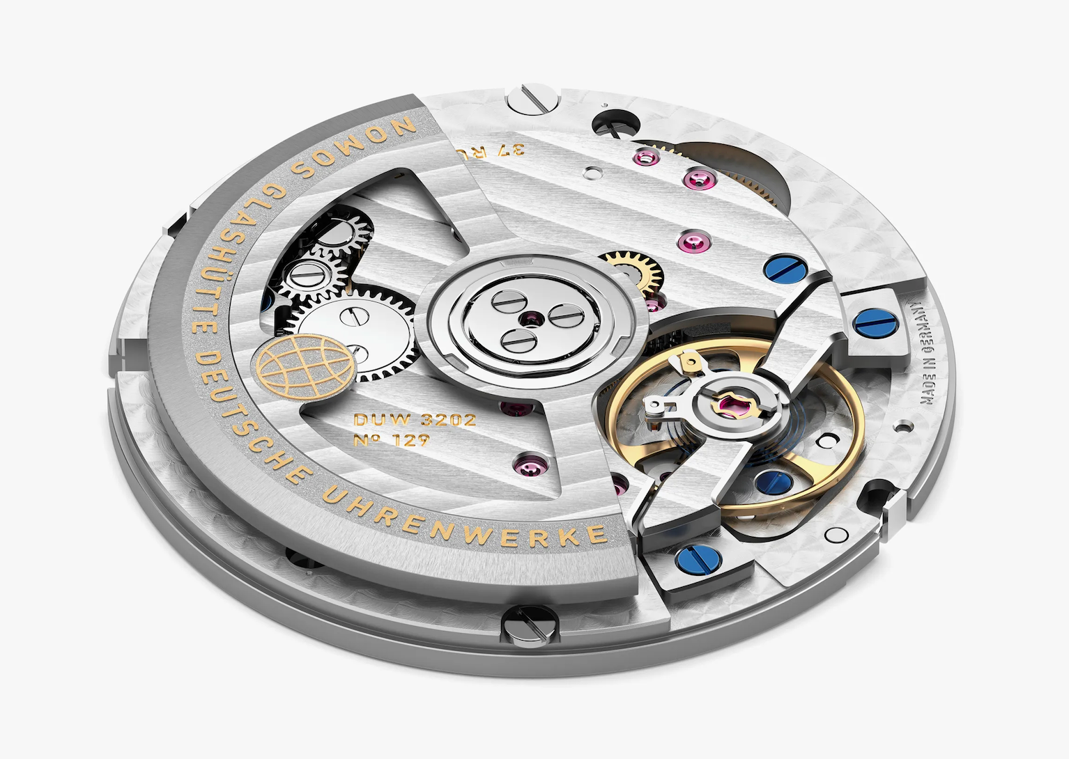 アワード受賞の時計に搭載しているのはノモスの新しい自社製 自動巻きキャリバー DUW3202 です。複雑機構でありながら 厚さ 4.8 ミリメートルと、パスポートよりも薄いムーブメントが 世界最薄のワールドタイマーの実現を可能にしています。