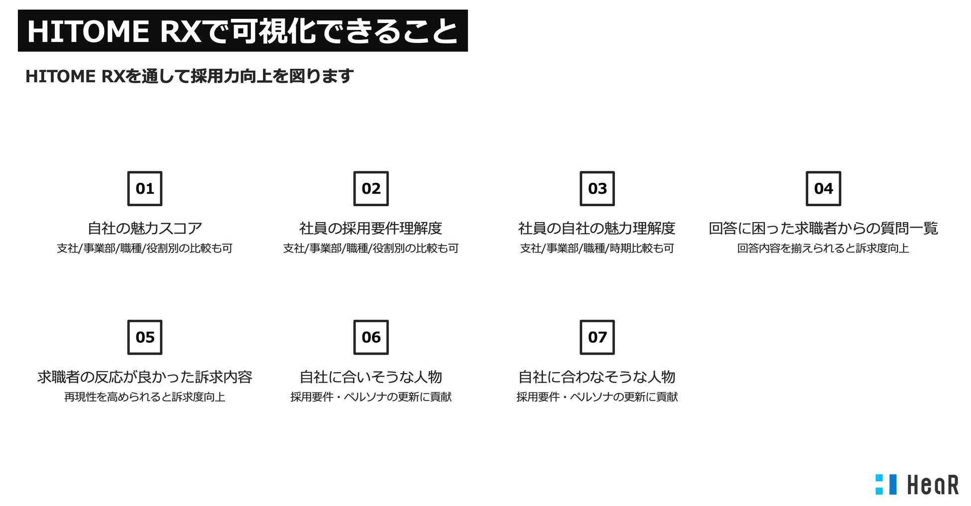 HeaR株式会社、採用力向上ツール「HITOME RX」をリリース - 自社が持つ魅力や面接体験のスコアリングを実現 -