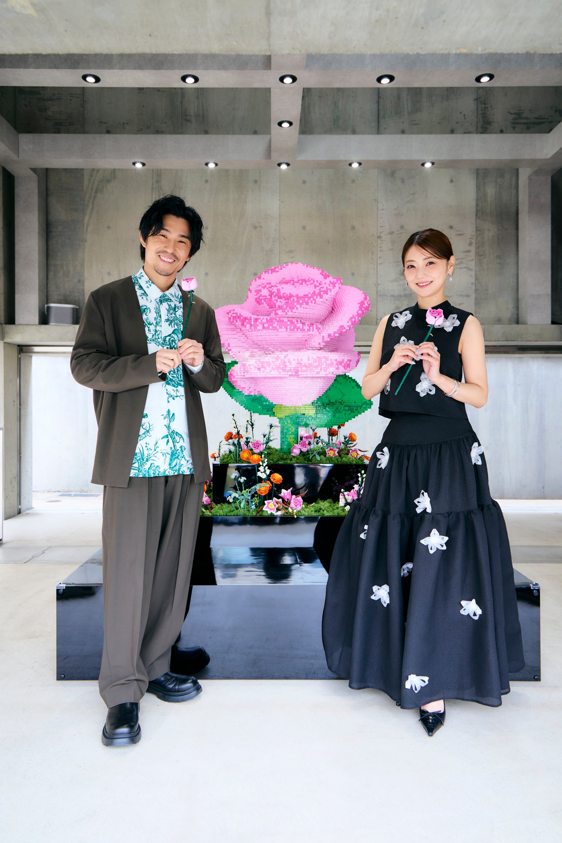 ■原宿が春色に染まる!レゴ®ブロックで組み立てた巨大なピンクローズや「花言葉」が織りなす6種類のオリジナルブーケを展示。中尾明慶さん、倉科カナさんが「自分らしさ」を表現した「世界に一つだけのアレンジメント」もお披露目