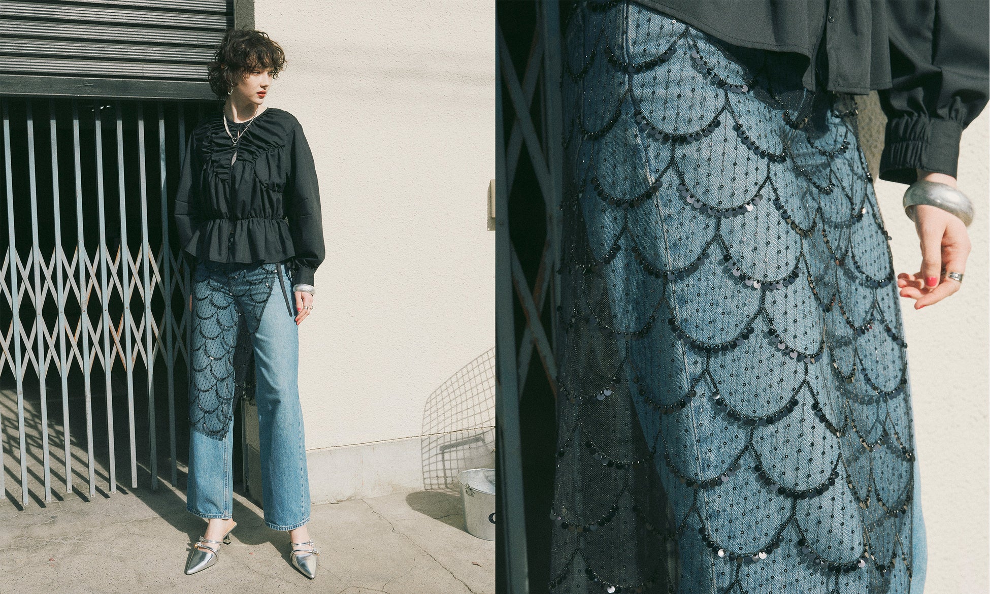 今季トレンドのラップスカートはボトムスの上からレイヤードスタイルをお楽しみいただけるアイテム。シアー感と煌びやかなスパンコールでワンランク上のコーデが完成します。