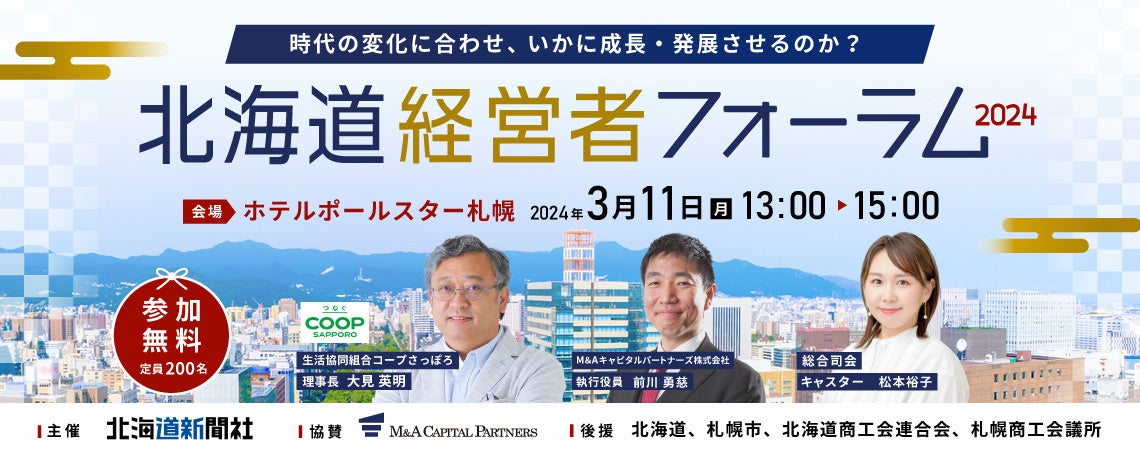 主催:北海道新聞社 協賛:M&Aキャピタルパートナーズ株式会社 後援:北海道、札幌市、北海道商工会連合会、札幌商工会議所 |