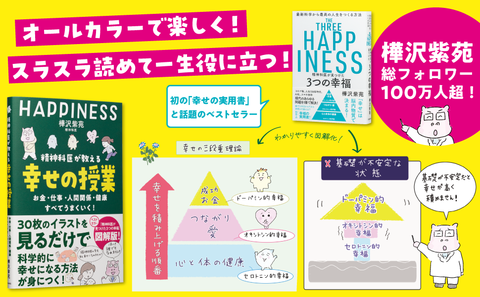 「3つの脳内物質」からアプローチ!話題を集めた『精神科医が見つけた3つの幸福』の図解版が登場