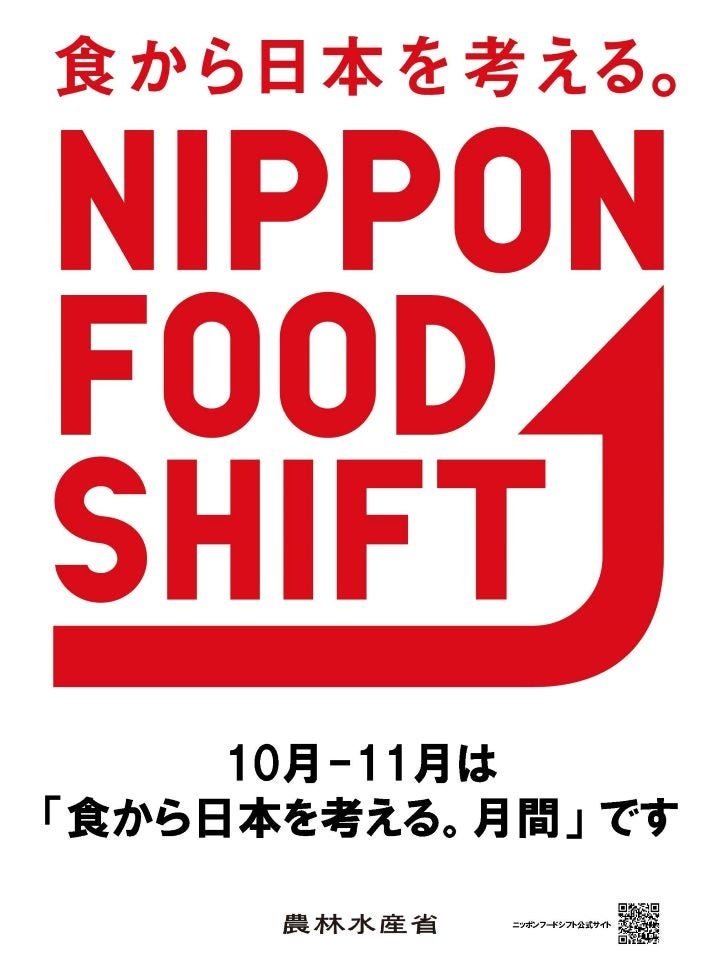 農林水産省は、食に関するイベントが多い10月、11月を「食から日本を考える。月間」として、全国各地で行われるイベント情報の発信等を行うこととしました。ニッポンフードシフトの運動趣旨に賛同する推進パートナー企業等との連携を通じて、更なる国民の理解醸成・行動変容を推進します。