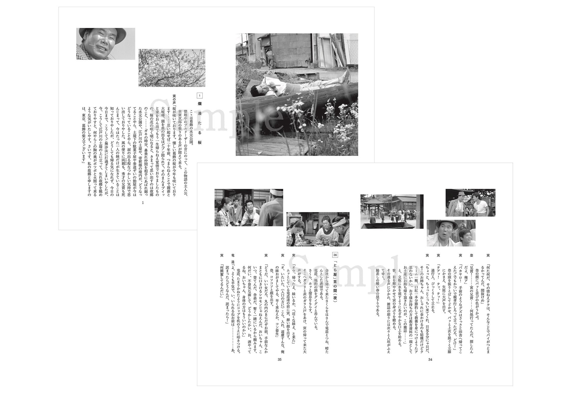 山田洋次監督も以前、寅さんの名セリフ「それをいっちゃあ、おしまいよ」が渥美清のアドリブだったと語ったことがあるが、流れるように流暢で、心地よさすら感じてしまうたたき売りのシーンや、クスっと笑ってしまう寅さんらしいセリフの数々に「これはアドリブ?」「現場でこんなやりとりがあったのかな?」と映画を観ながら思わず妄想したり、シナリオ片手に観るだけでお馴染みの『男はつらいよ』の世界をより深く満喫できるスペシャル特典。