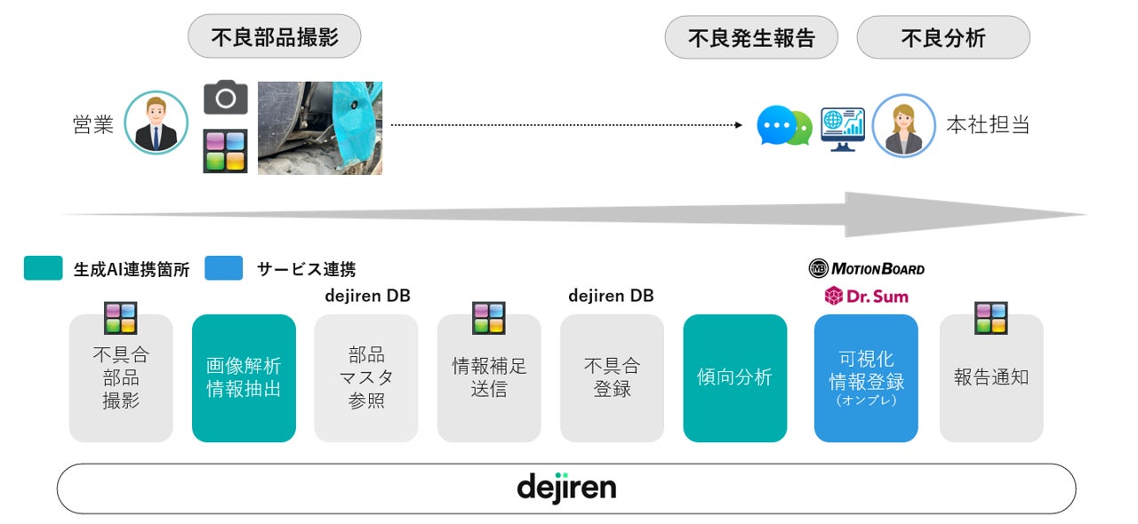■AIプラットフォーム「dejiren」と各製品の組み合わせによる業務自動化の例