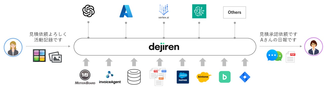 ユーザーは各プロジェクトや業務内容に応じて適切なLLMを個別に選択・契約する必要が不要になり、「dejiren」を通じて自動的に最適なLLMを組み合わせた業務のデジタル化・DXを実現できるようになります。