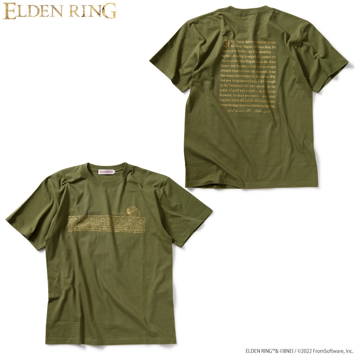 世界的大ヒットのアクションRPG『ELDEN RING(エルデンリング)』から、ダークファンタジーの世界観を元にイメージしたTシャツです。祝福の導きに従い、プレイヤーの思惑と共に行動する"褪せ人"をモチーフに、フロントにBOXロゴと褪せ人のグラフィック、バックにシンボルをデザインした「褪せ人柄」、高路下の洞窟のボス、ガーディアン・ゴーレムとの闘いのショットをサークルロゴ内に落とし込んだグラフィックと、バックにシンボルをあしらったデザインの「ガーディアン・ゴーレム柄」、オープニングムービーに登場するマレニアを、迫力の有る筆絵タッチで描いた「マレニア柄」、フロントに外界から隠された『壺村』を故郷とする生きた壺の一族、壺人と壺表面のレリーフ、背面にELDEN RINGの英文プロローグをデザインした「壺人柄」の全4種展開。