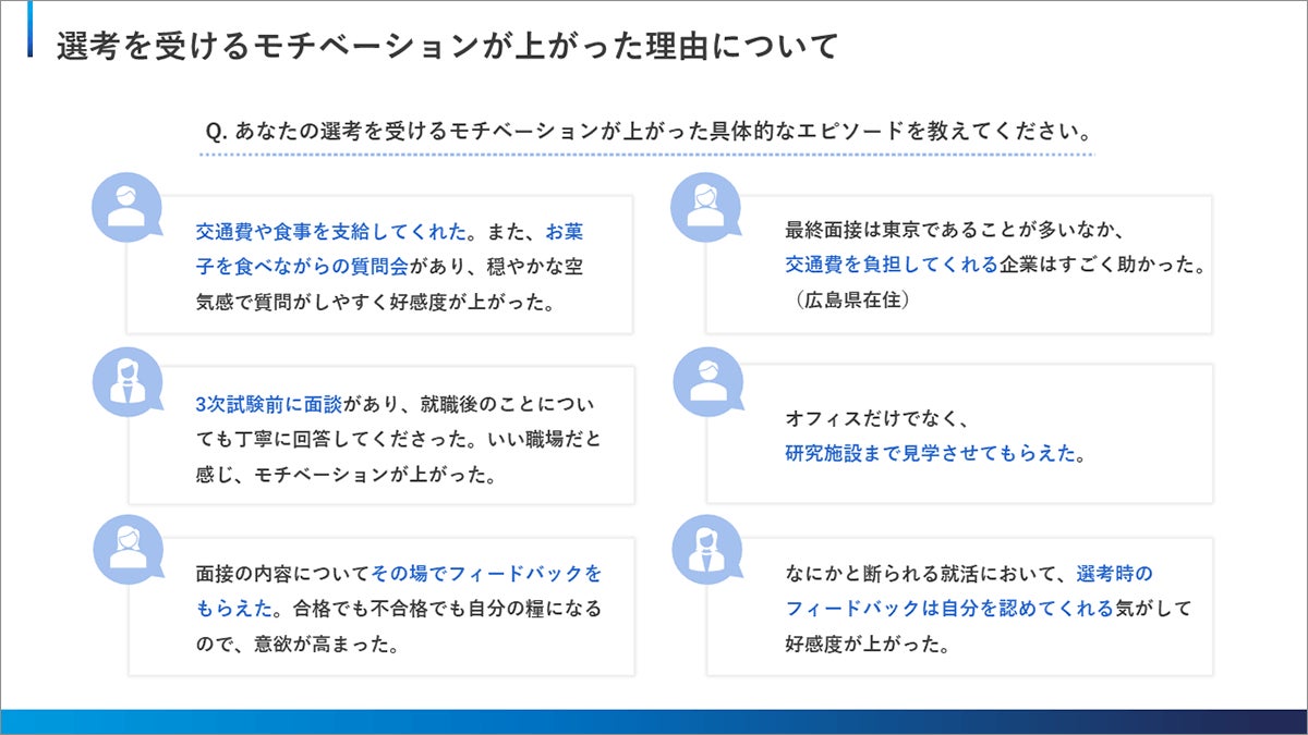 選考モチベーションアップには、交通費などの支給に加え「リアル」を伝える情報の豊富さもカギ