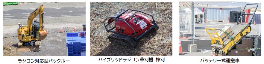 アクティオは、遠隔操作で作業の安全性と効率を高めるさまざまな機械を提供しています。「ラジコン対応型バックホー」は、マシンコントロール仕様のバックホーとラジコンによる遠隔操作を組み合わせたもので、遠隔操作で課題とされていた精度の高い施工を実現。災害復旧や危険な場所での作業に最適です。「ハイブリッドラジコン草刈機 神刈」は、小型でパワーがあり、草刈りはエンジン、移動はモーターで動くハイブリッド方式です。また、操作が簡単で初心者でも扱いやすい草刈機です。「バッテリー式運搬車」は、階段や傾斜のある場所でも最大500kg、平地では1,000kgの荷物を運べる運搬車で、排気ガスが出ないため屋内でも安心して使えます。狭い場所でもスムーズに動かせるのも特長です。