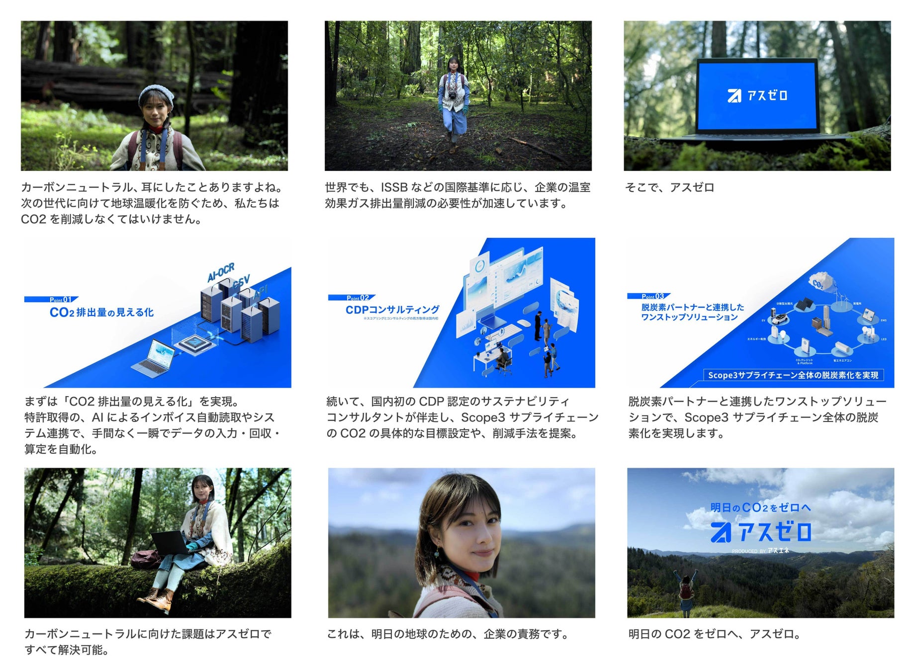 当社は、CO2可視化サービスにおいてアジアNo.1*である3,000社(2023年3月末時点)の導入社数の実績を持つ「アスゼロ」通じ、サプライチェーンを巻き込んだ脱炭素経営を推進することで気候変動における社会課題を解決したいと考えています。その認知活動の一環として、女優の玉田志織さんを起用した「アスゼロ」のブランドムービー公開とウェブサイトをリニューアルしました。