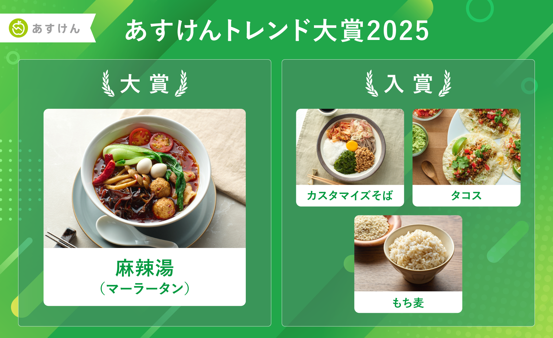 ■『あすけんトレンド大賞2025』受賞料理・食材のポイントは「パーソナルカスタムフード」