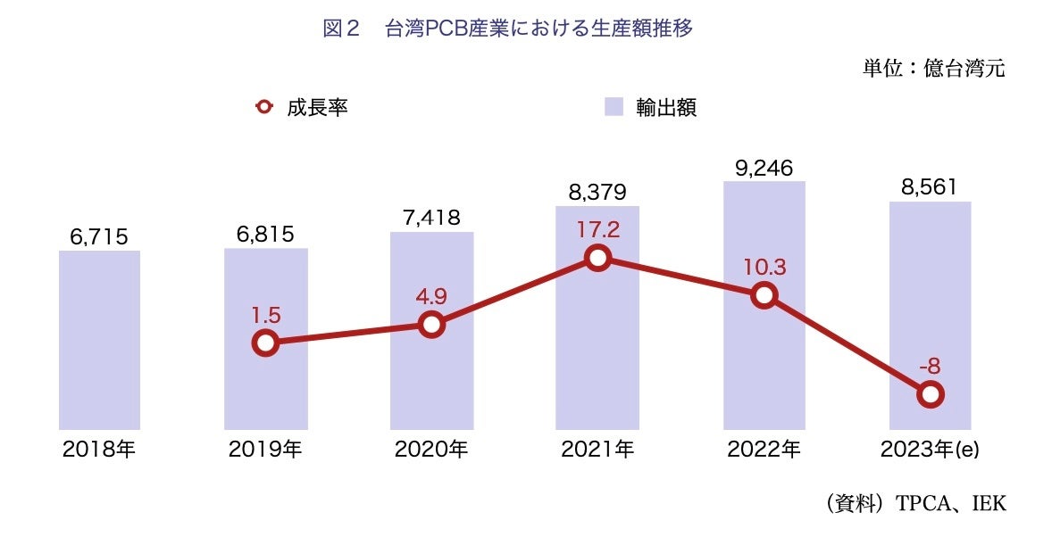 台湾PCB産業の生産額は世界首位で、22年の世界シェアは35%だった。台湾PCB産業は台湾の電子部品上位3産業の一つでもある。