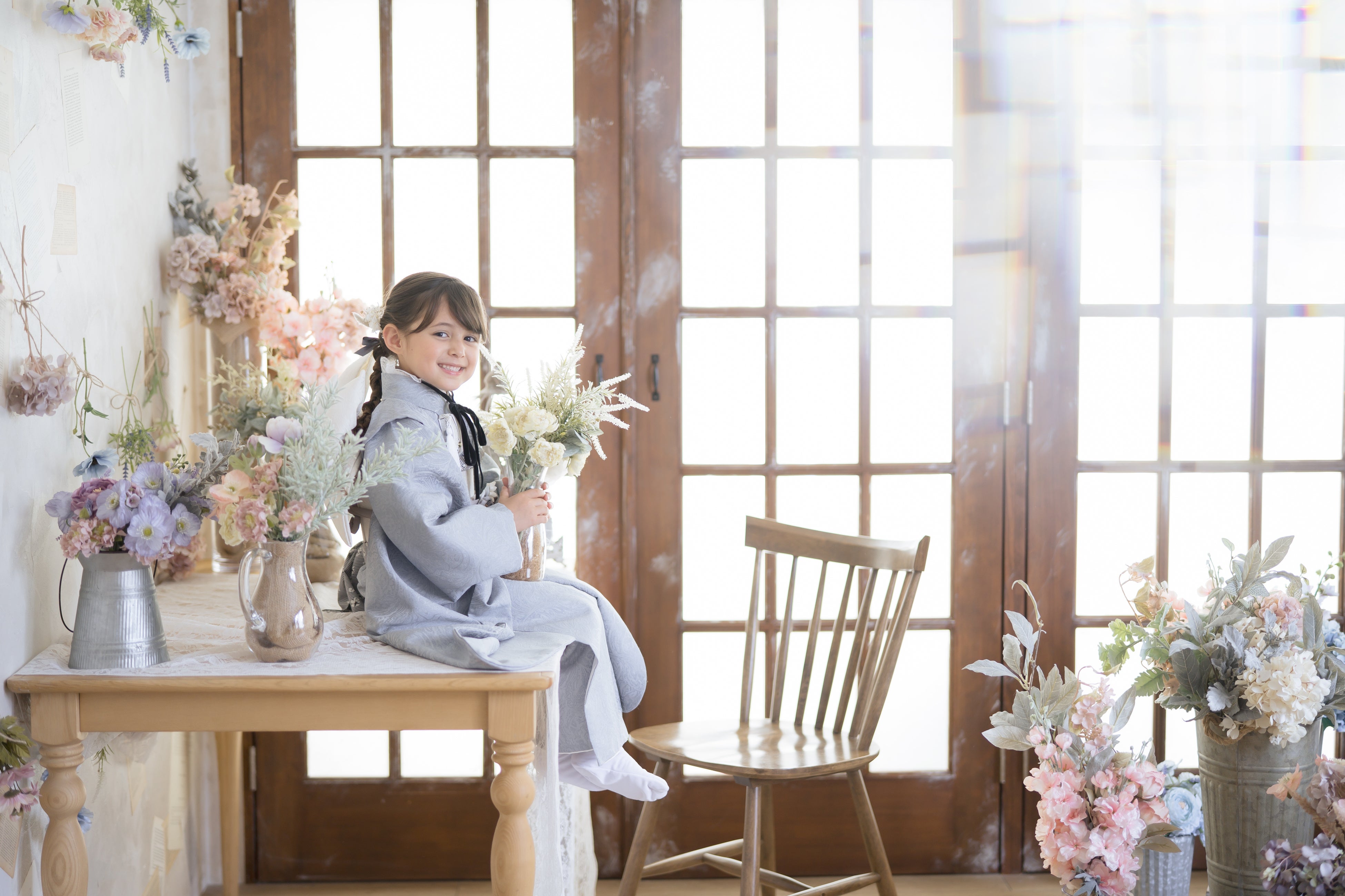 完全プライベートの空間を2時間使用でき、リラックスした雰囲気の中でお子様の自然な姿を撮影できます。ヘアメイクはもちろん、インテリアや一部衣装もコフレオリジナルで取り揃えています。毎年撮影に訪れる根強いファンも。