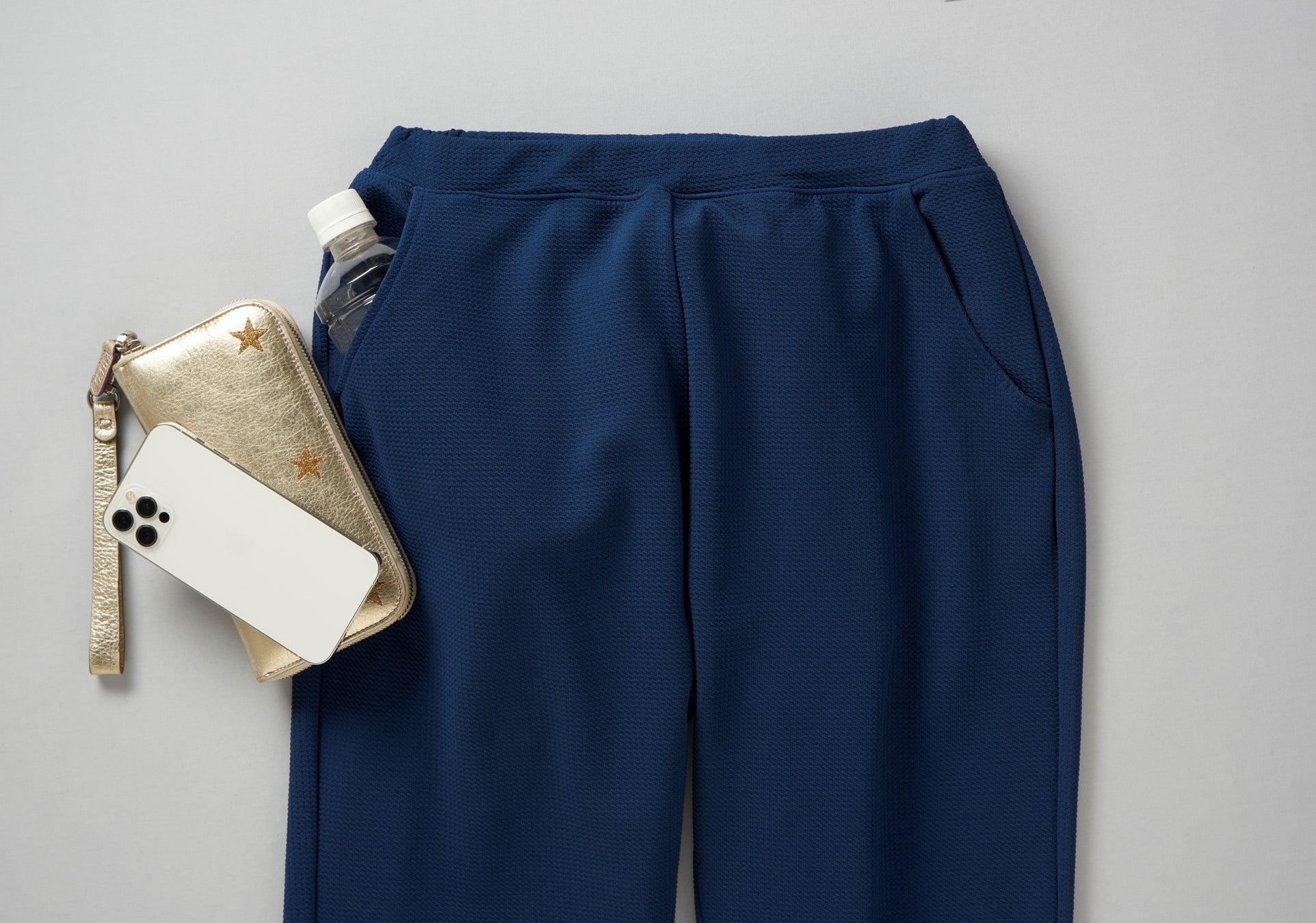パンツのポケットは500mlペットボトルや長財布が入る大きめ仕様で、家事中にスマホを持ち歩くのはもちろん、外出時に手ぶらで出かけられる身軽さを実現しました。
