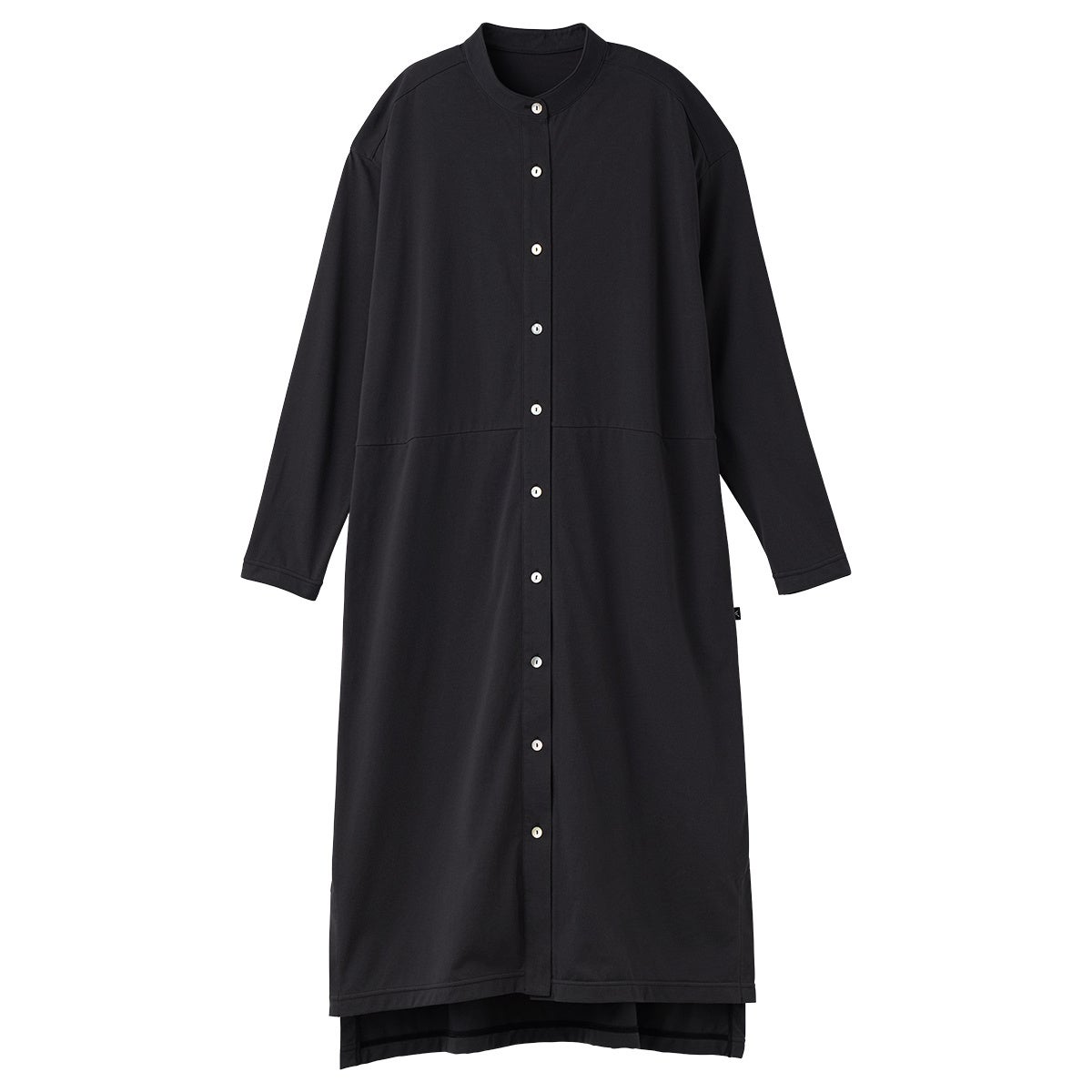 羽織としても使えるシャツタイプの長袖ワンピース。低めに配置した後ろのタックやゆったりとしたシルエットが、リラックス感がありながらも上品な印象に。裾には深めのスリットを入れ、前後差をつけることで足さばき良く。貝ボタンや脇ポケット付きなどディテールにもこだわっています。