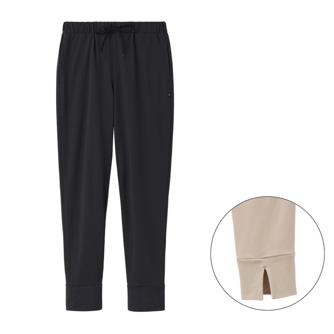 裾はフライスを使用することで捲れ上がりにくいだけでなく、後ろにスリットを入れることで足首をきれいに見せるさりげないデザインに。裾にかけてすっきりとしたテーパードシルエットで、楽で履き心地が良いパンツです。