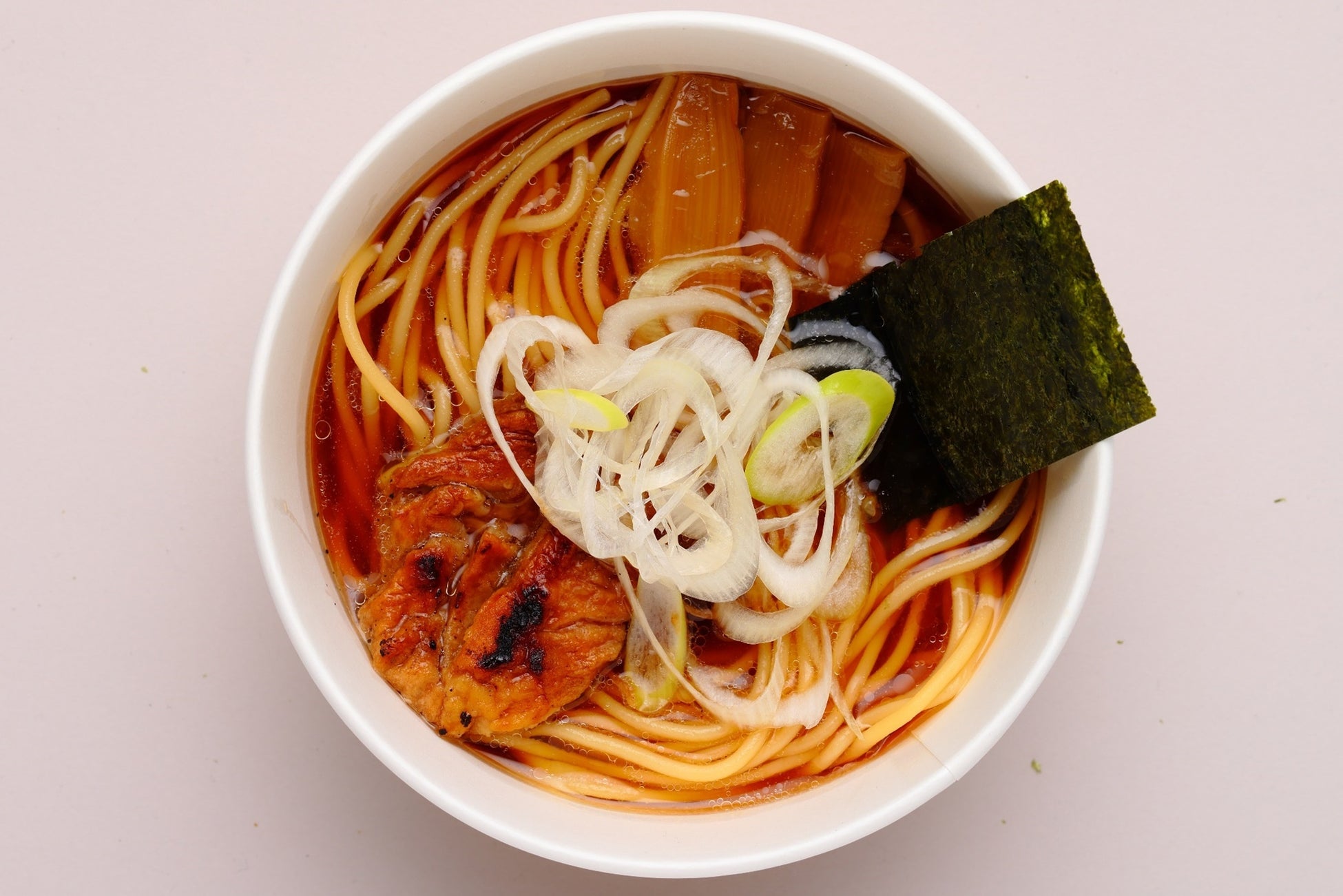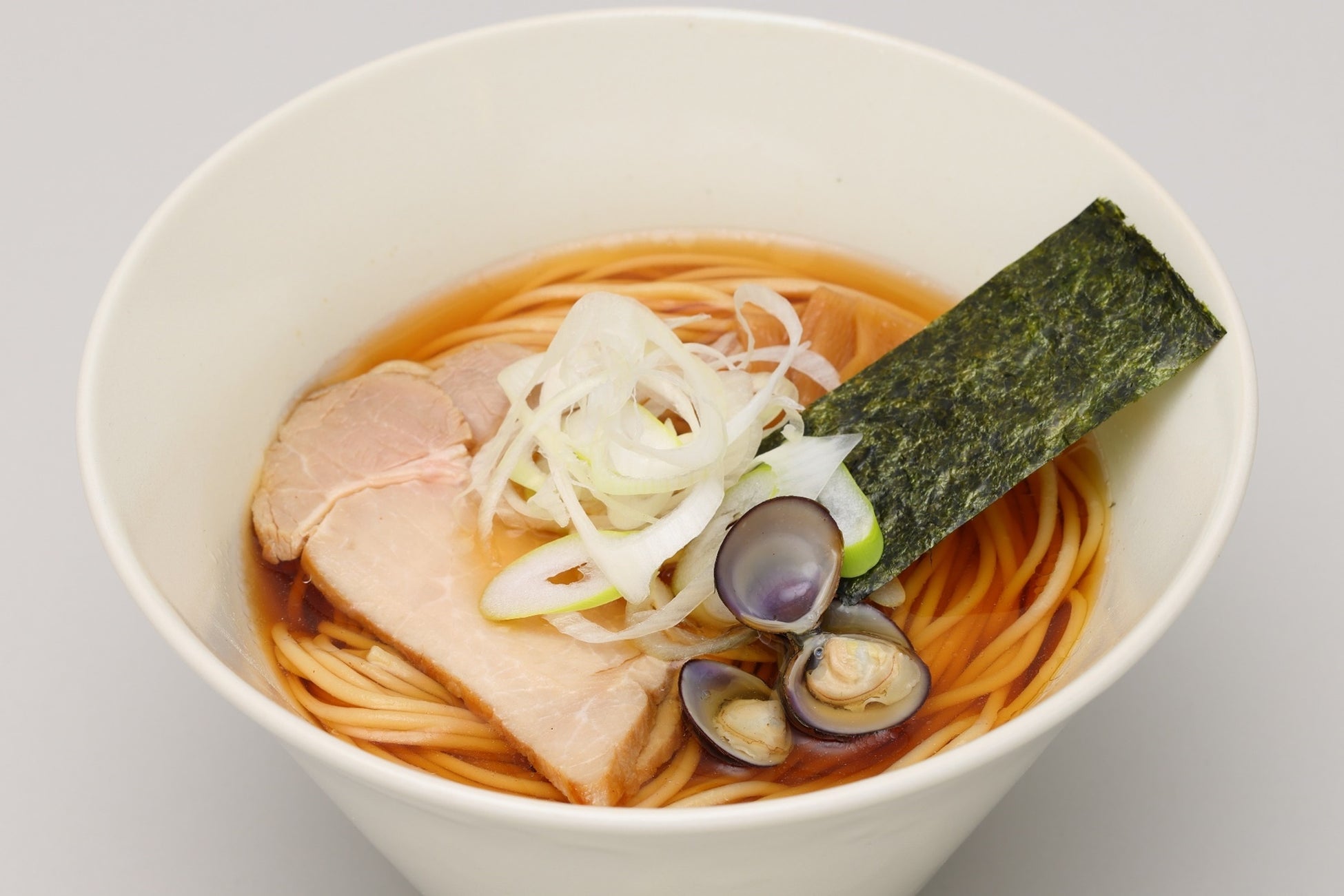 喜多方市でお馴染みの“朝ラー”文化を罪なく楽しめる一杯です。スープは、煮干しやシジミで出汁を取り、カロリーを抑えたあっさり醤油スープです。 具材には、脂質が少なく満足感のある豚モモを低温調理でしっとり仕上げ、シジミと玉葱とメンマをトッピングした朝にもぴったりな一杯です。