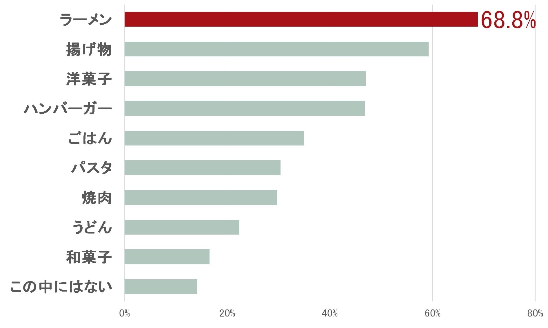最も罪悪感を抱く食べ物は「洋菓子」「揚げ物」を抜いて「ラーメン」が1位(68.8%)