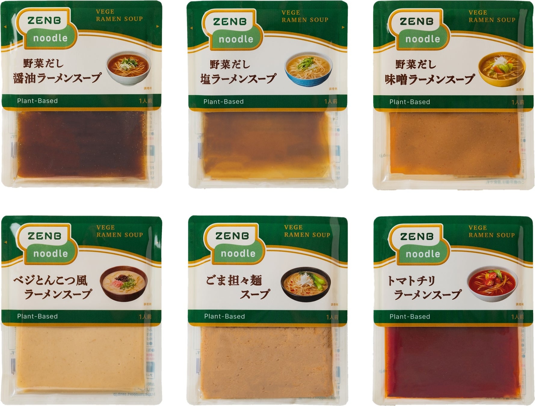 黄えんどう豆100%「ZENBヌードル」のゆで汁に溶け出た豆のだしまでおいしく活かせるラーメンスープです。添加物に頼らない味づくりで、豆や野菜の旨みを引き立たせたスープは、プラントベースなのに満足感のあるコクとおいしさが楽しめます。いつものラーメンより塩分控えめ、ZENBヌードルと合わせると低カロリー・低糖質な食べても罪悪感の少ないおうちラーメンが手軽につくれます。野菜だし醤油、野菜だし塩、ベジとんこつ風、野菜だし味噌、ごま担々、トマトチリの6品を販売。