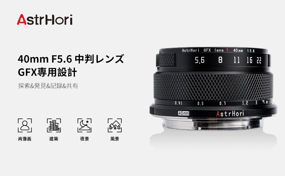 【新発売】AstrHori 40mm F5.6 Fuji GFXカメラ用、4万円台で買える中判カメラマニュアルレンズ。五角形のスターバースト効果を作成でき!