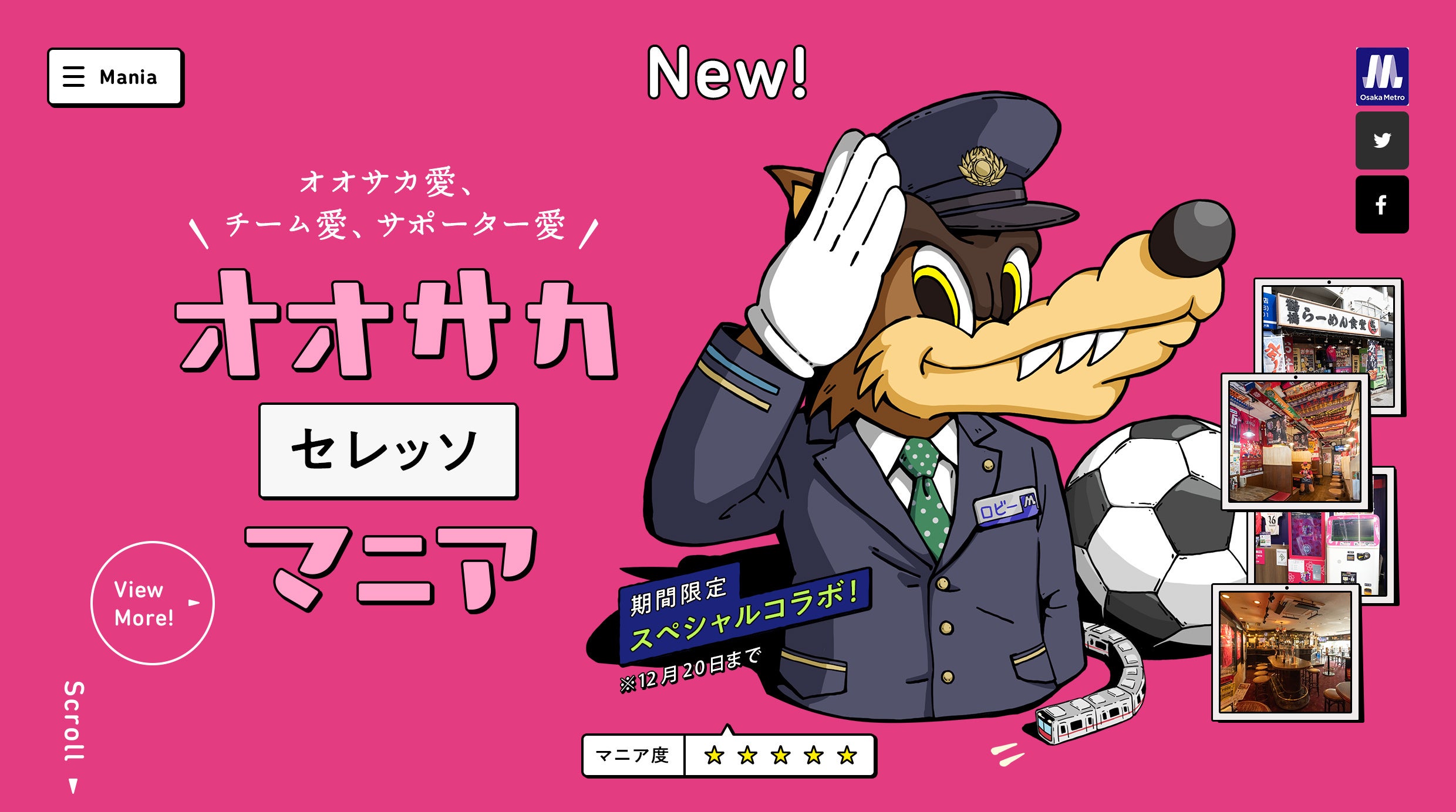 さらに、「オオサカマニア」では、9月8日(木)から12月20日(火)まで、セレッソ大阪のファン・サポーターの皆様が集う「セレッソマニア」なスポットをセレッソ大阪の森島寛晃社長(サッカー元日本代表)がアンバサダーとしてご紹介する記事を公開します。