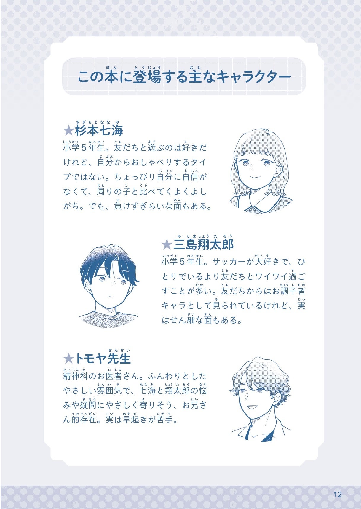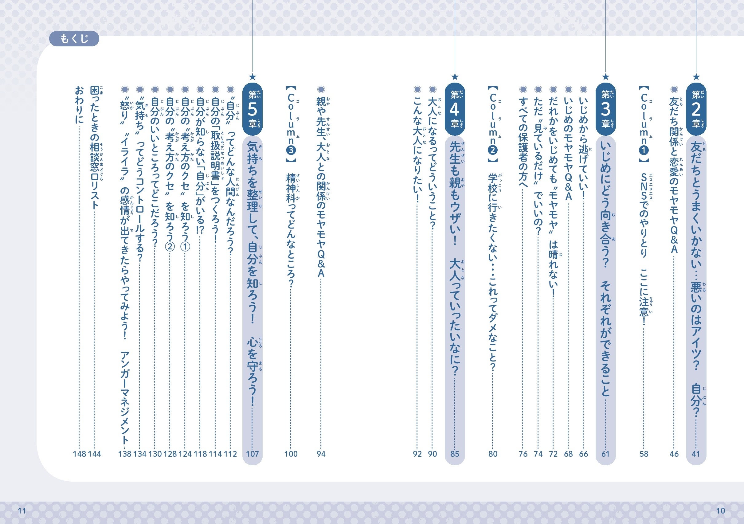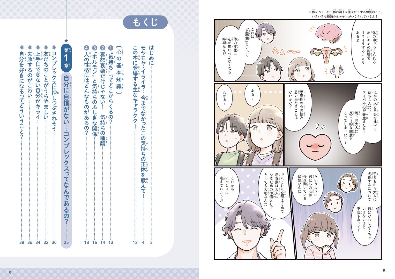 この本では、コンプレックスとの向き合い方、友だちとトラブルがあたっときの解決のヒント、大人との関係性、いじめ、不登校のことなどを、精神科医の藤野智哉 先生と一緒に考えて学んでいきます。